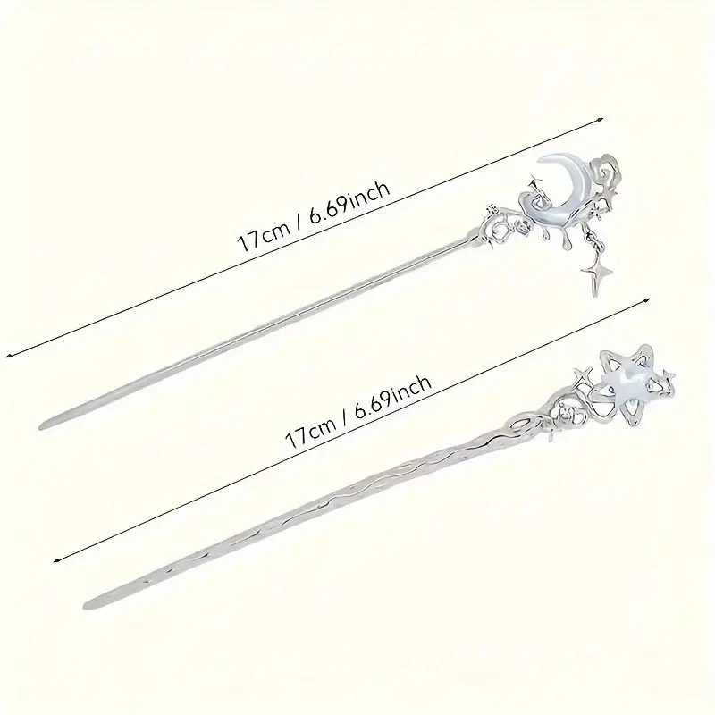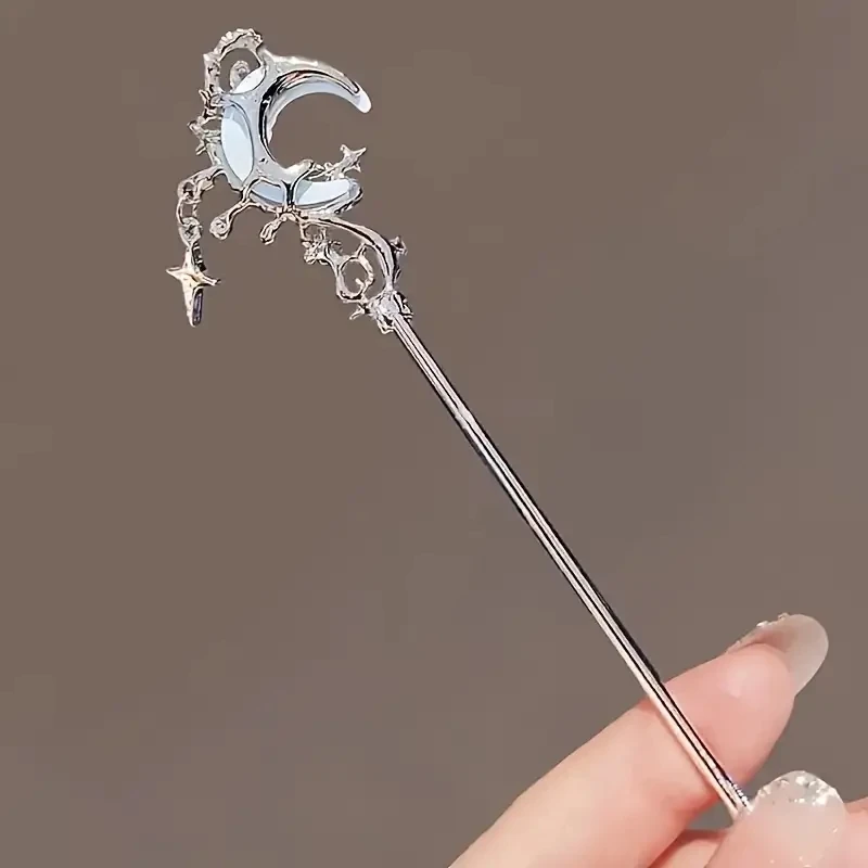 1/2pcs Romantic Moonstone Star and Moon Hair Sticks Chinese Style Cross Tassel Hairpin with Disk Design Elegant Hair Chopsticks