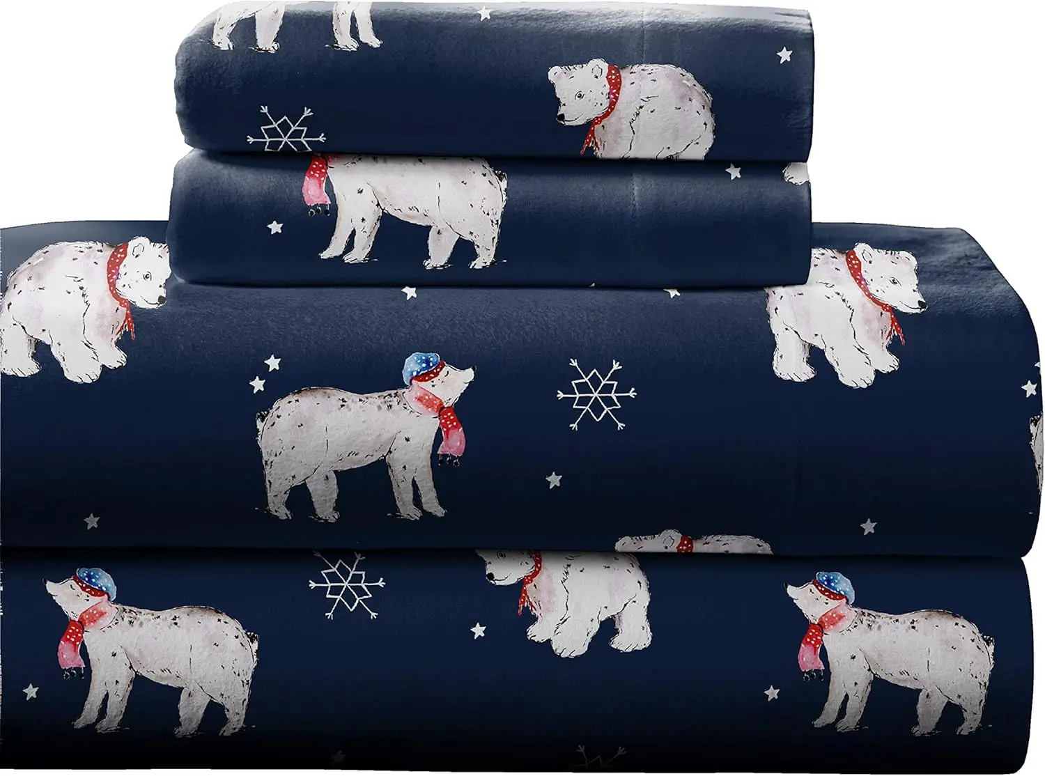 180 GSM 100% Cotton Flannel Queen Sheet Set - Snow Bear - Warm & Cozy Pre-Shrunk Deep Pockets
