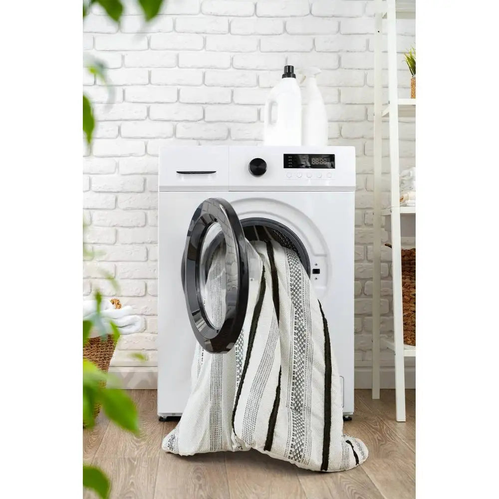 - Striking coastal stripe with black trims: multicolor pattern coordinates with modern, boho, or coastal decor and helps disguise light wear.