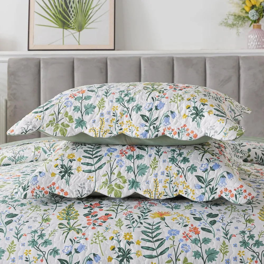 Floral Quilt Set Lightweight Patchwork Cotton Bed Coverlets 3 Piece