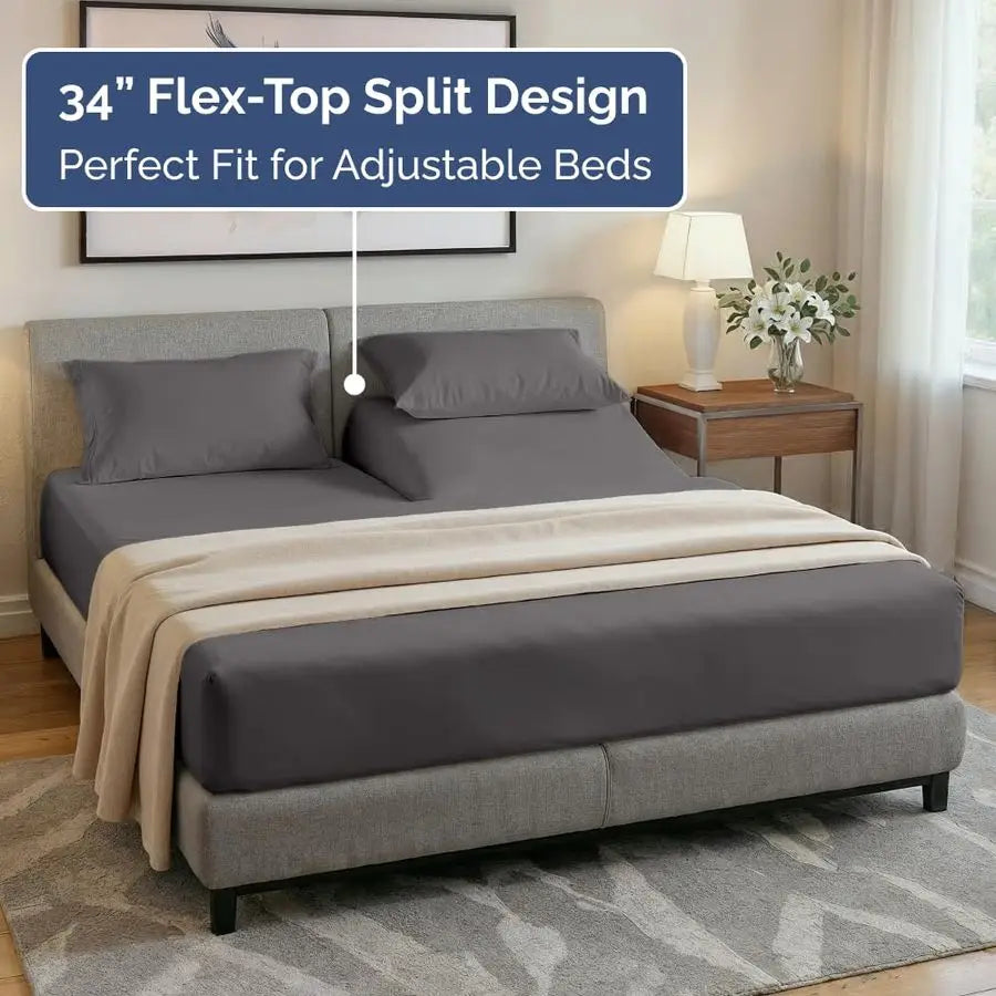 Head King Sheets Set Top Split King Sheets for Adjustable Beds, EasyFit Split Head King Mattress Flex Split Top King Sheets, Eas