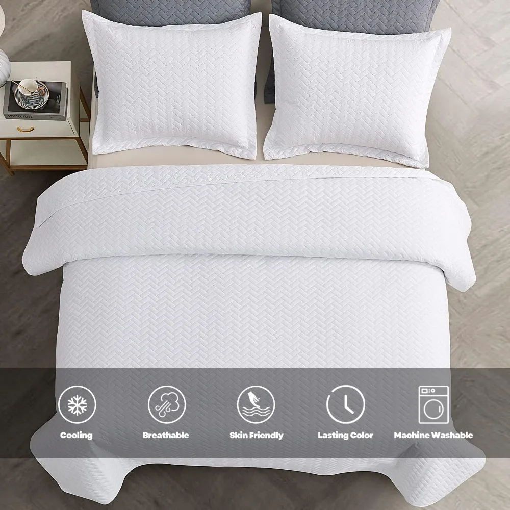 Quilt Set Oversized King Bedspreads, 128x120 Lightweight White Bedspread Light Coverlet for All Season Comforter Bed