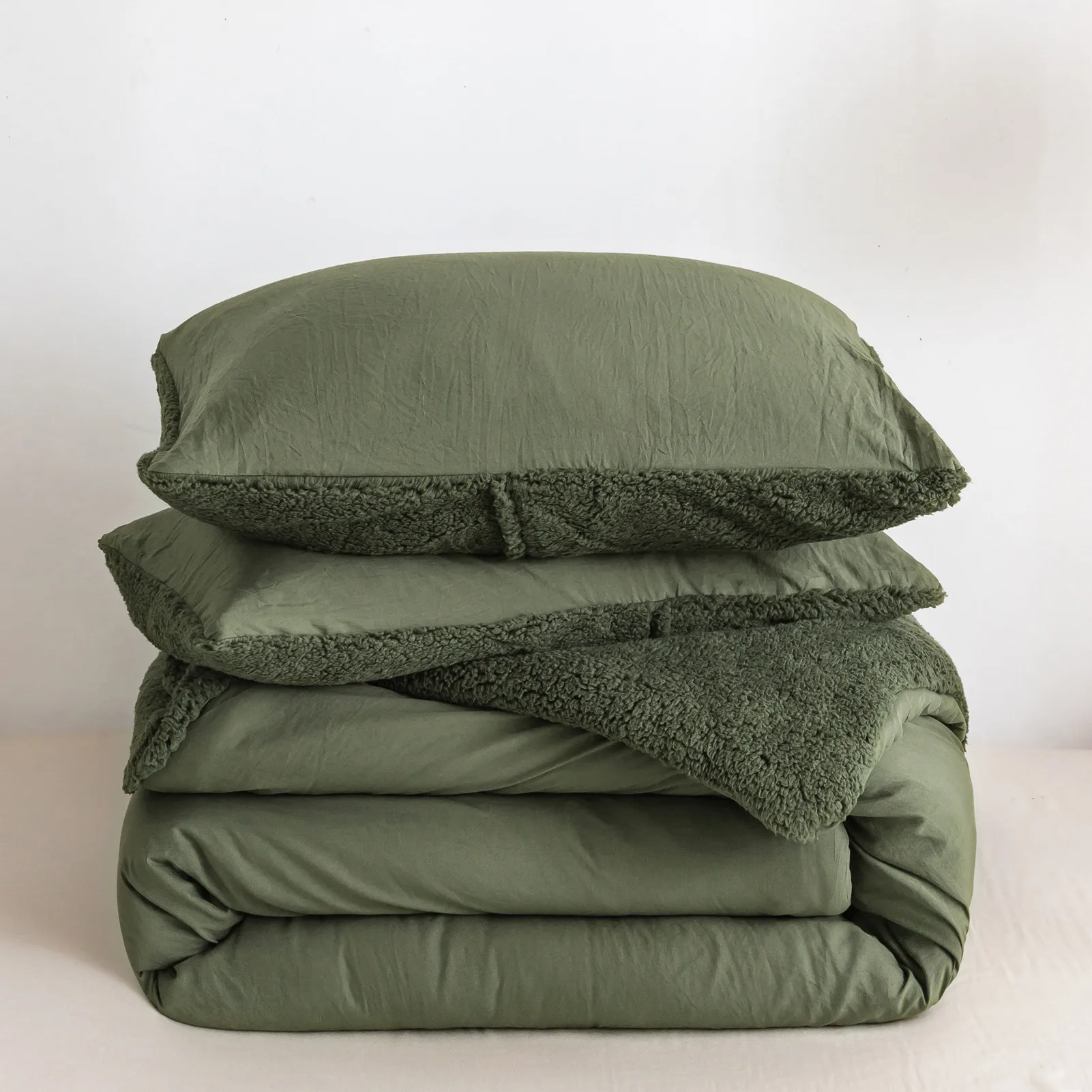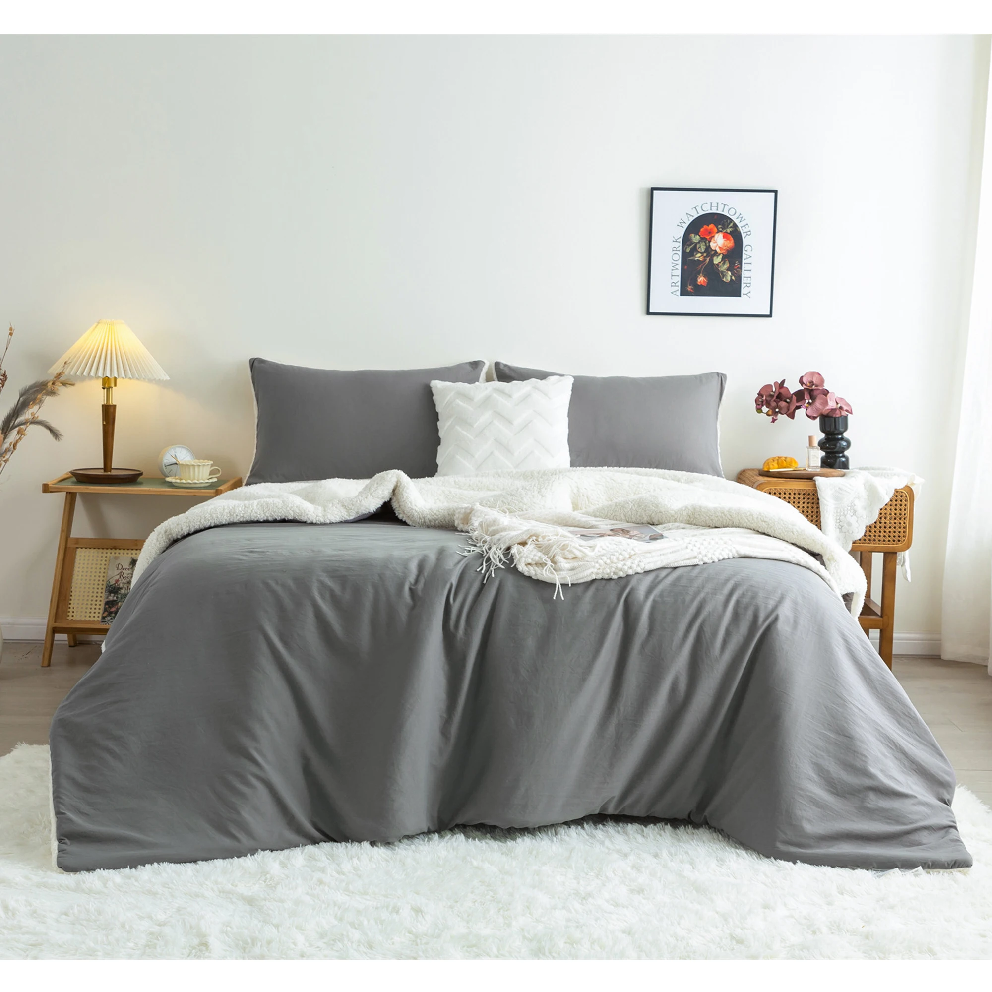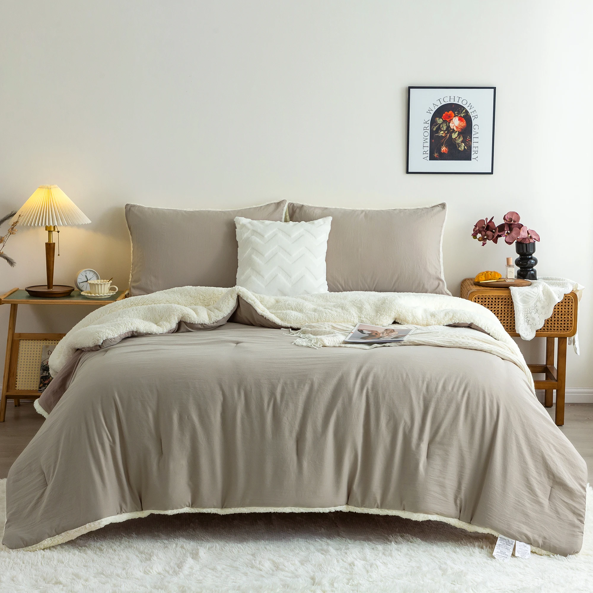 REVERSIBLE COMFORTER DESIGN - Outside is Cozy Fluffy Fleece Sherpa,Middle is 320GSM PP Fabric,Inside is Sklin Friendly Soft Washed PolyCotton Microfiber.You can use it with the Sherpa side in Cold winter,use the Washed PolyCotton side in fall and spring.